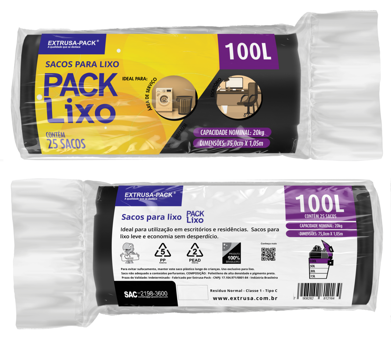 • PACK LIXO 100 LITROS PRETO 75X105 FD 10X25 UN