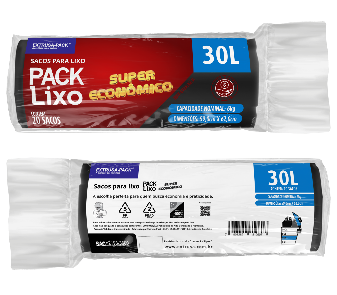 • PACK LIXO SUPER ECONOMICO 30 LITROS PRETO FarDo com 20 rolos (20 UN por rolo)
