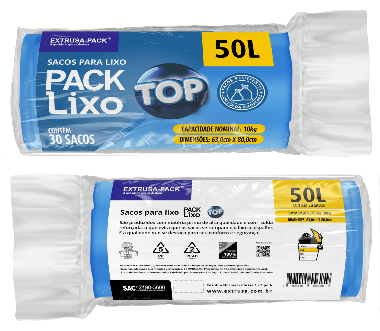 SACO DE LIXO TOP 50 LITROS AZUL (63X80 CM) - FARDO COM 10 ROLOS (30 UND POR ROLO)