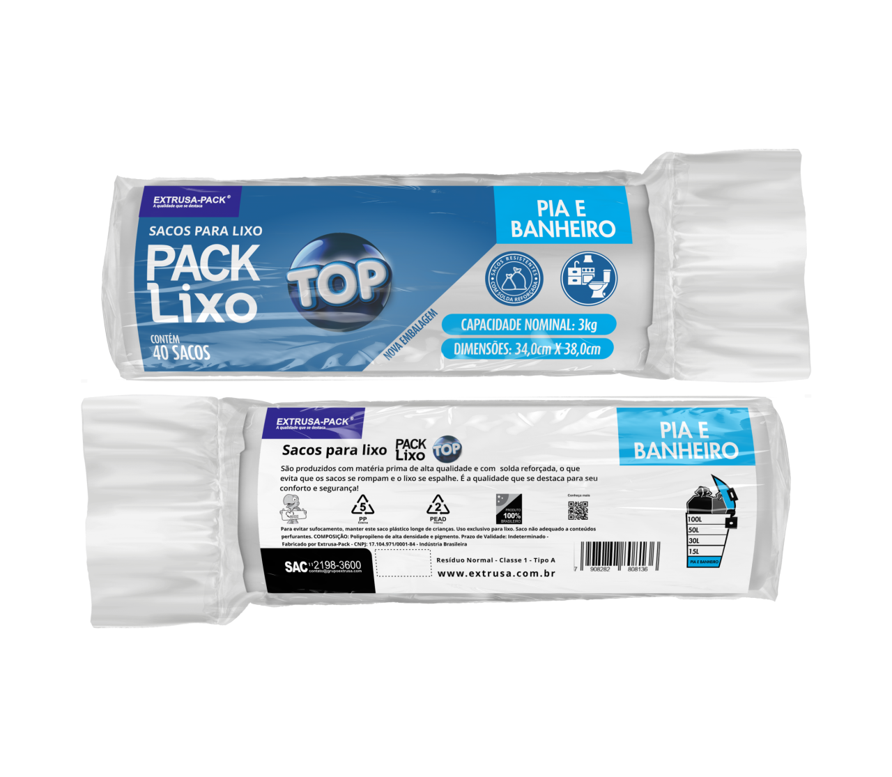 SACO DE LIXO TOP PIA E BANHEIRO (34X38 CM) - CAIXA COM 24 ROLOS (40 UND POR ROLO)