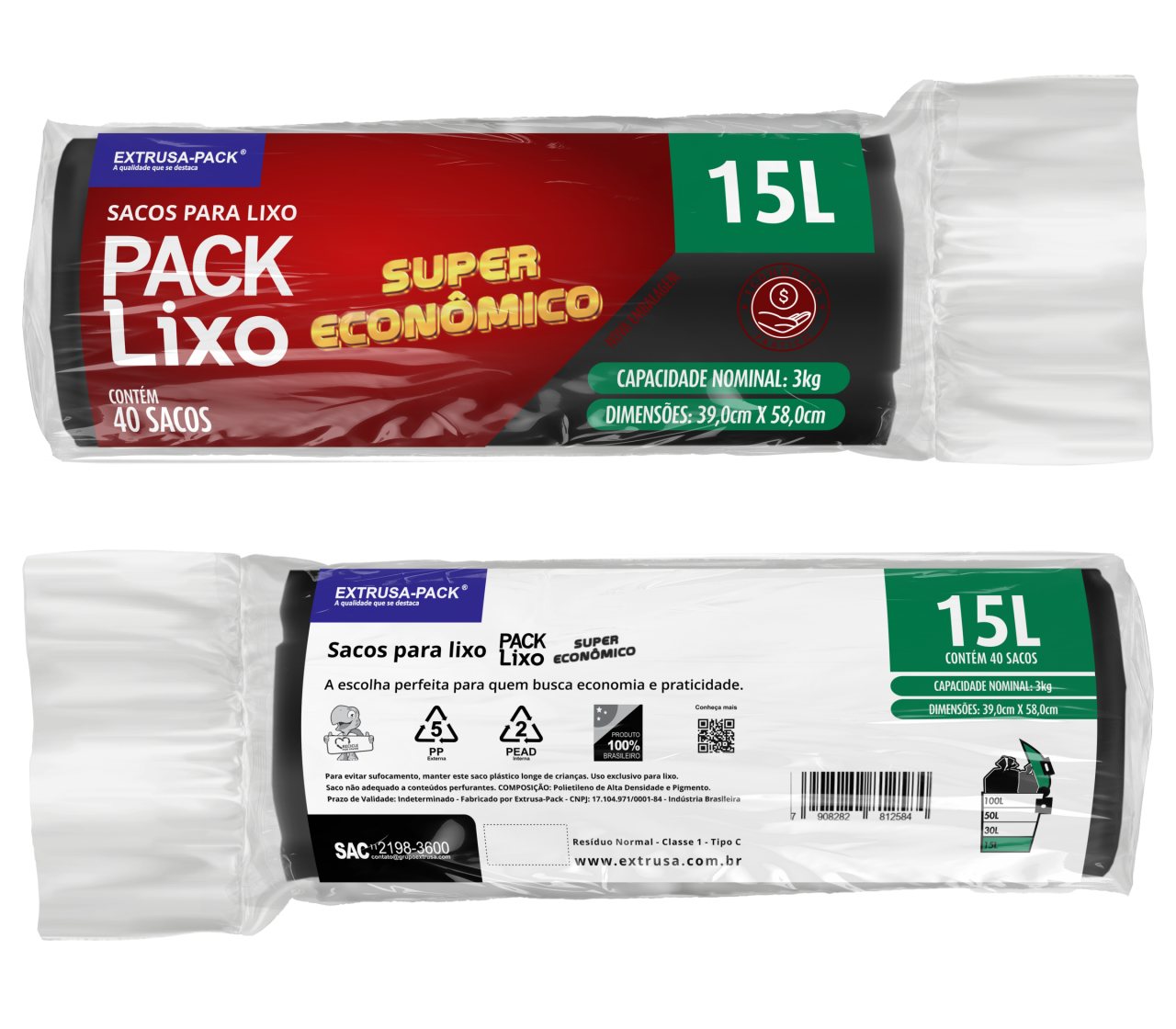 • PACK LIXO SUPER ECONOMICO 15 LITROS PRETO FarDo com 20 rolos (40 UN por rolo)