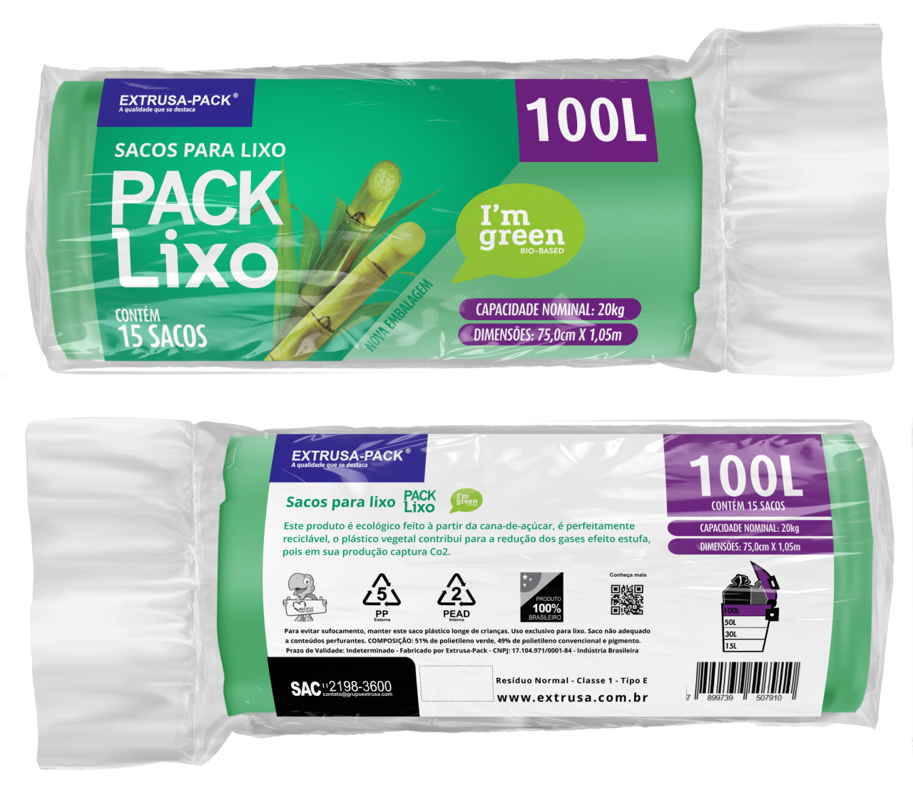 SACO DE LIXO IM GREEN 100 LITROS VERDE (75X105 CM) – FARDO COM 10 ROLOS (15 UND POR ROLO)