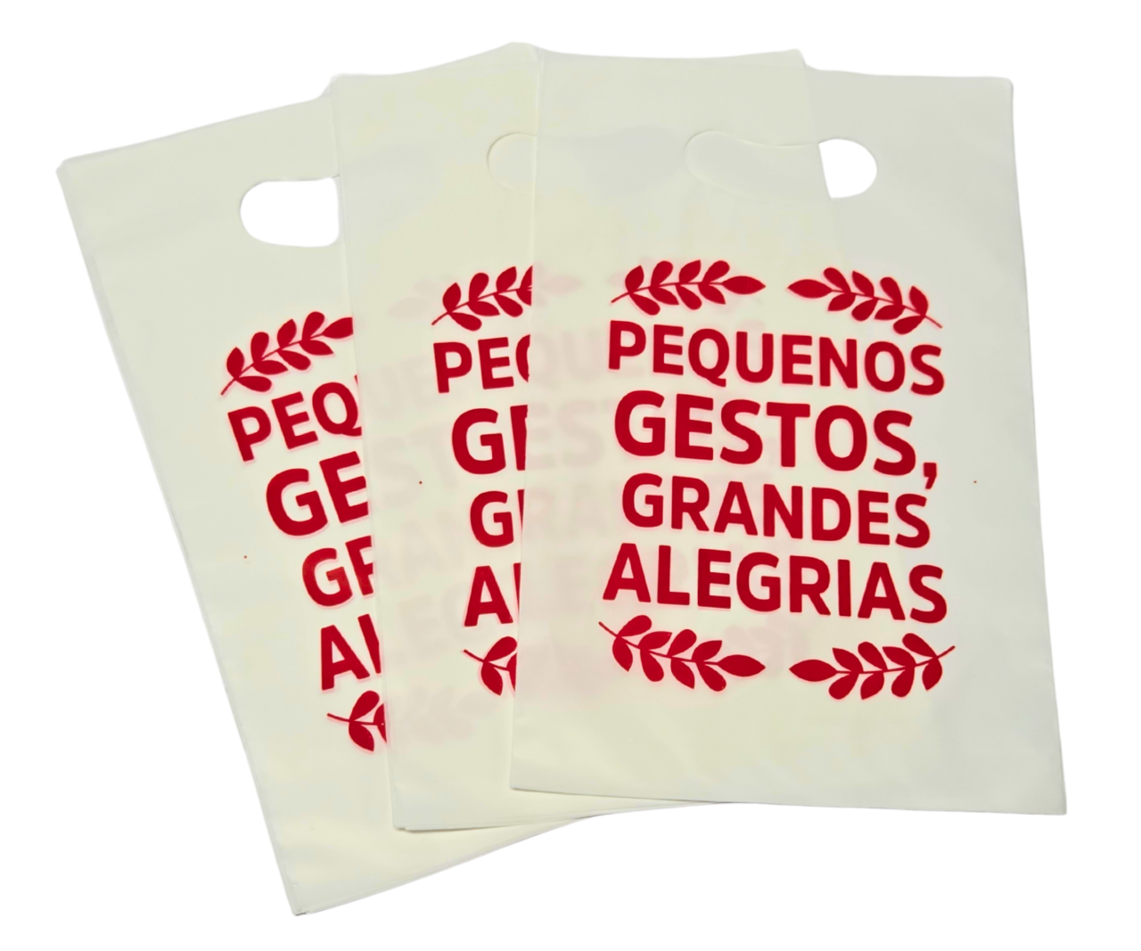 SACOLA PIGMENTADA 20 X 30 BRANCA IMP. MODELO ALEGRIA - FARDO COM 10 PACOTES (50 UND POR PACOTE)