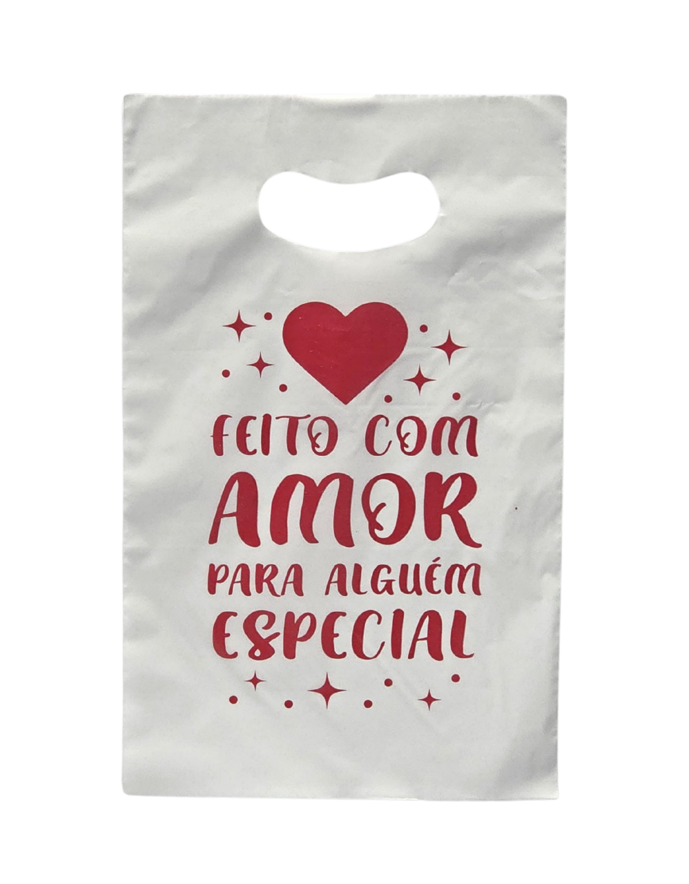 SACOLA PIGMENTADA 20 X 30 BRANCA IMP. MODELO AMOR - FARDO COM 10 PACOTES (50 UND POR PACOTE)